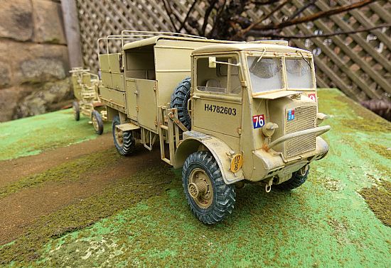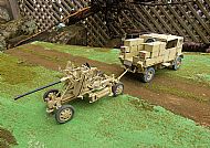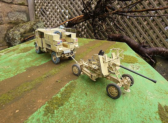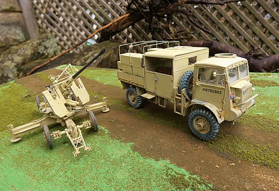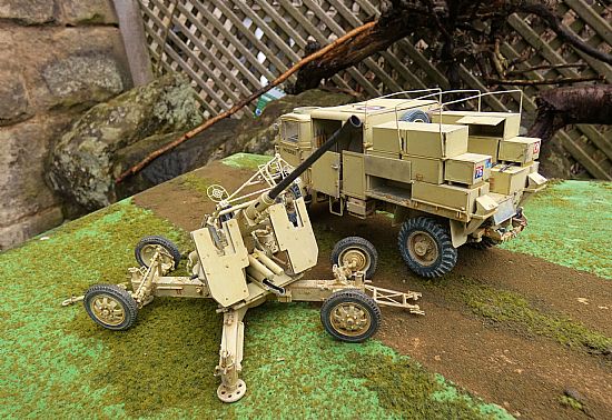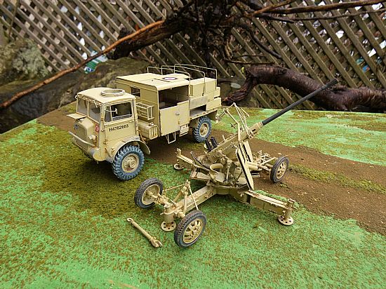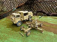 The models have been built, airbrushed and weathered to an exceptional standard to represent a vehicle serving with of the 7th Armoured Division (The Desert Rats) in North Africa. The Bofors can be displayed in both towing and firing positions and the top of the rear section of the Bedford can be removed to show the interior detail within.