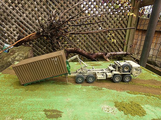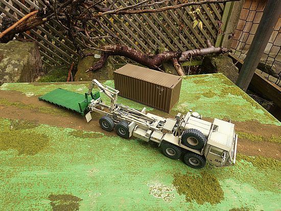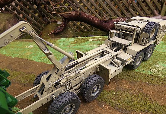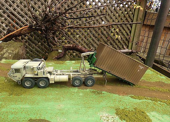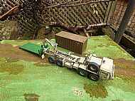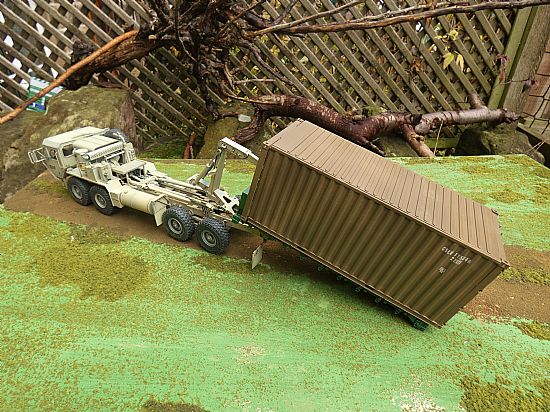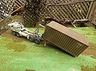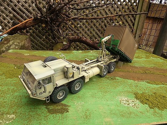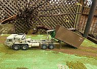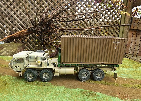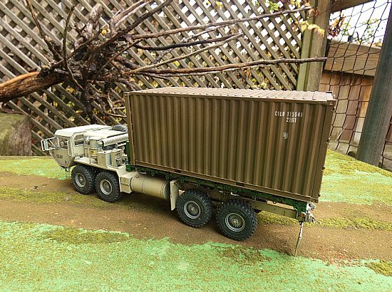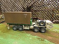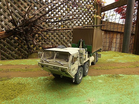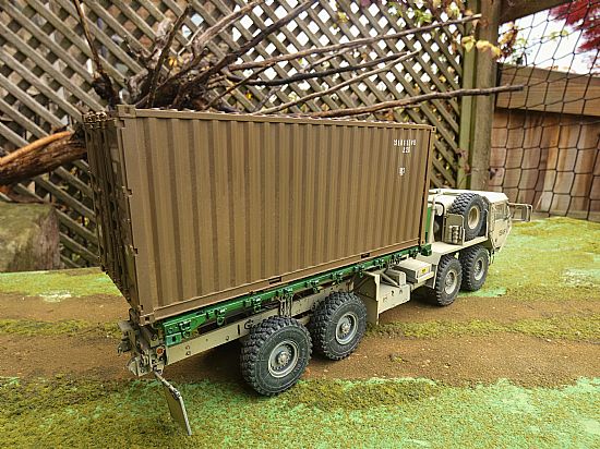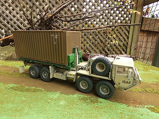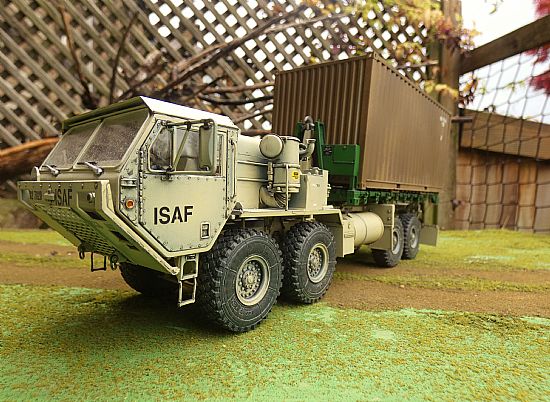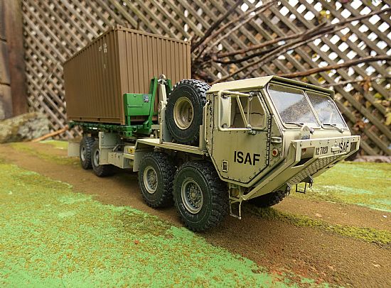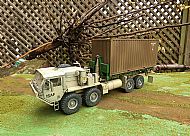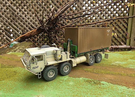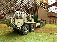 The M1120 has been built, lightly weathered and airbrushed in a desert camouflage paint scheme to an exceptional standard to represent a vehicle serving with US Forces with ISAF in Afghanistan. The loading ramp can be raised / loading and the container is not attached to the ramp.